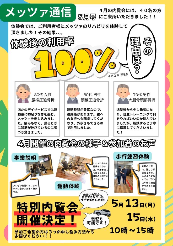 さて、メッツァでは、4月8〜13日にケアマネジャー様を対象に内覧会を行わせていただきました!
